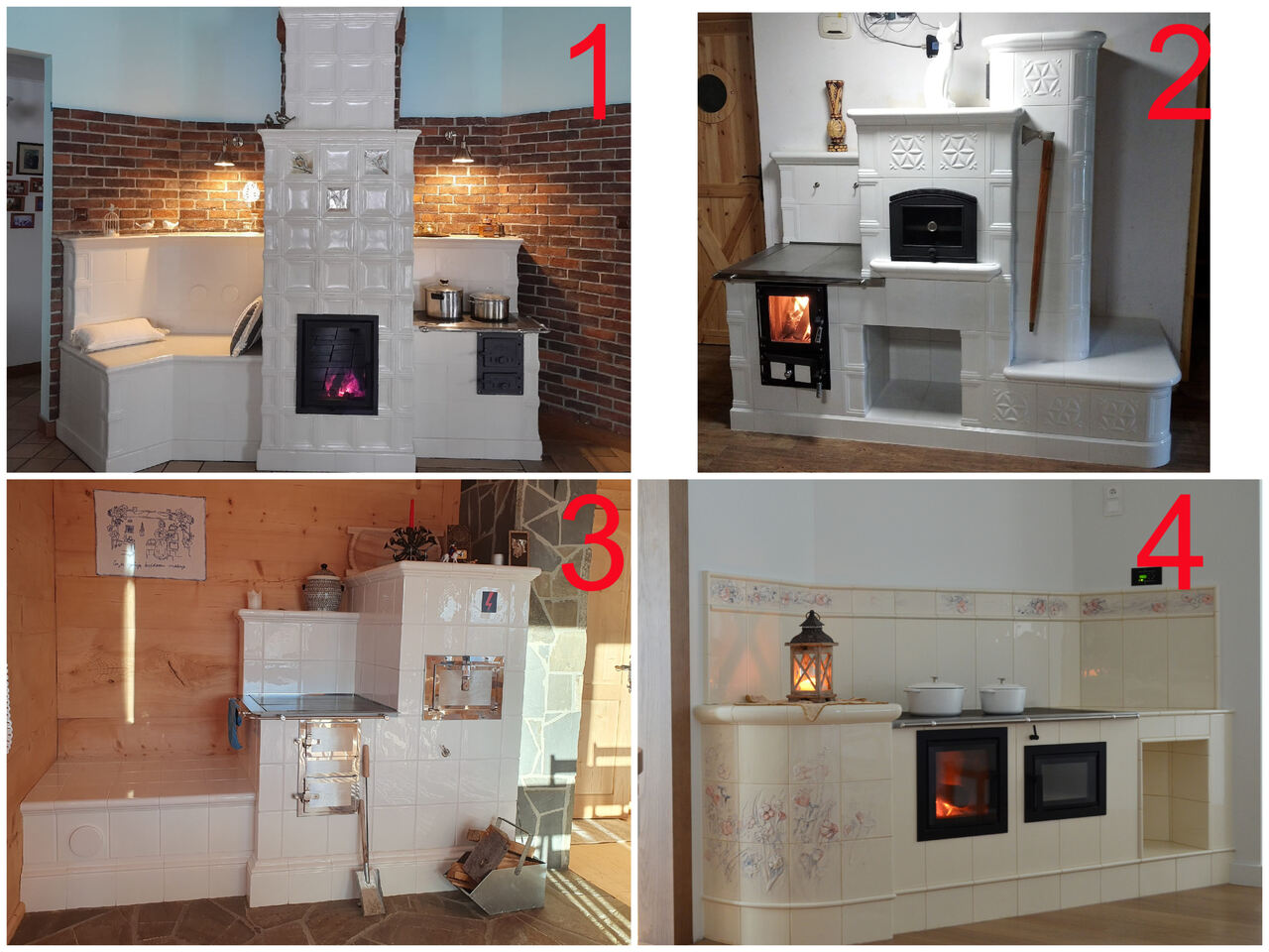 1. Zduństwo A. Ł. Wierzbinka Kuchnia kaflowa połączona z piecem kaflowym oraz grzejącą ławą. W realizacji wykorzystano palenisko marki Unico oraz kafle model Roma z Kaflarnii Grochowski.