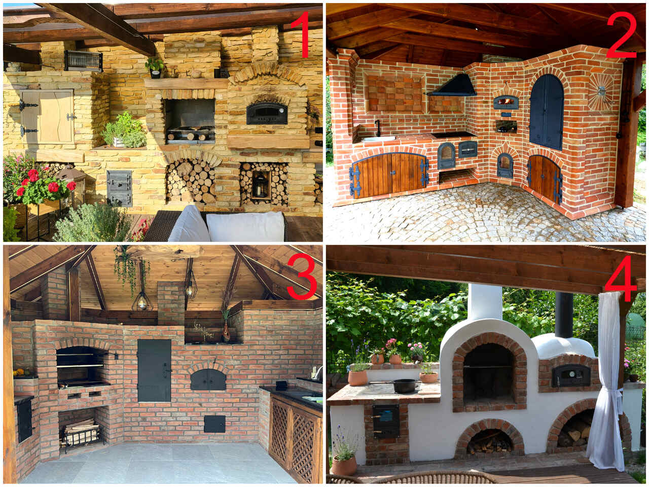 1. 4M - Tech, Damian Domińczak Bardzo estetycznie skomponowana kuchnia ogrodowa zawierająca grill, piec chlebowy, wędzarnię oraz kuchnię zewnętrzną z fajerkami. Kuchnia ogrodowa wykonana z piaskowca żółtego z Kopalnii Żarnów.