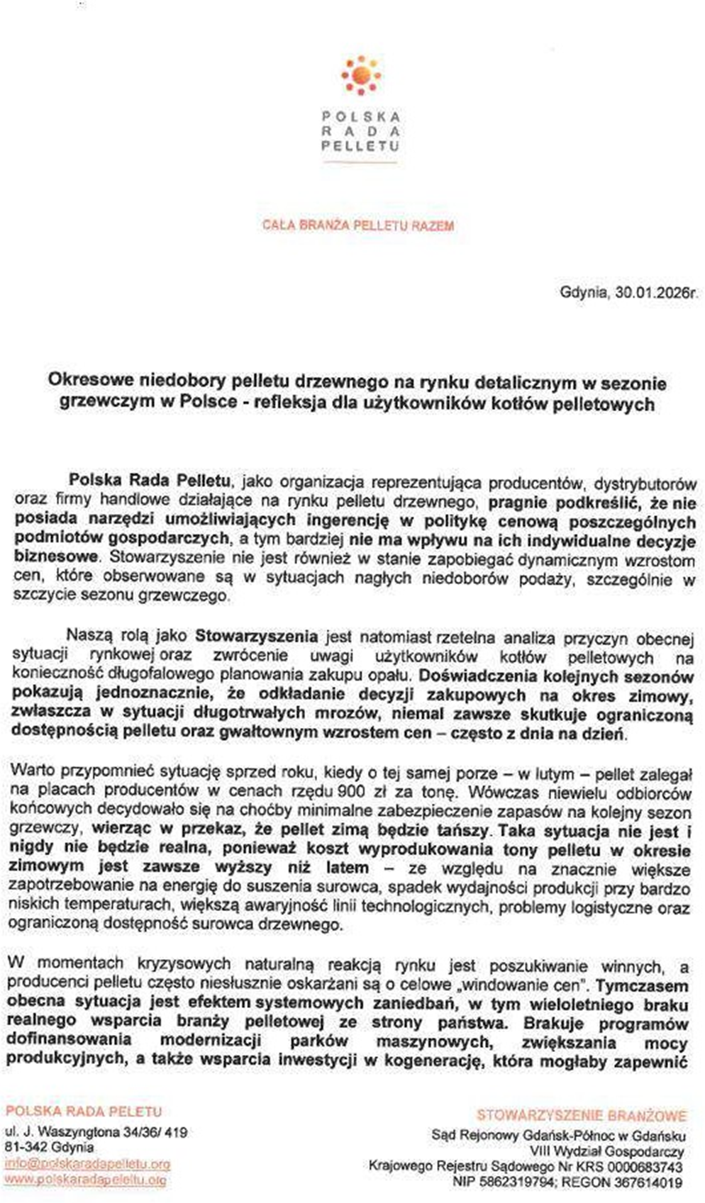 Zachęcamy do zapoznania się z pełną treścią stanowiska Polskiej Rady Pelletu o kryzysie w dostępności pelletu zimą 2025/2026 - CZYTAJ
