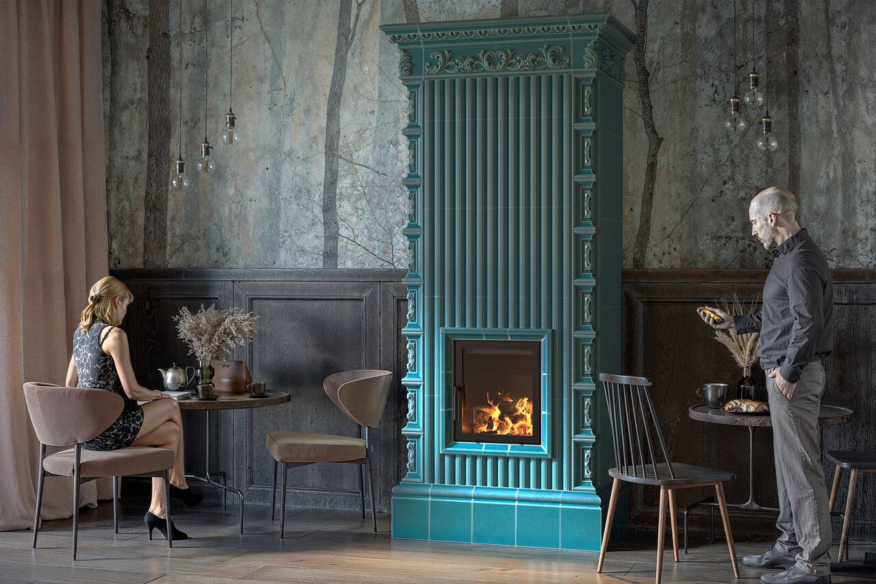 Ale nie tylko w formie i rysunku kafli znajdziemy bogactwo możliwości, lecz także w kolorze. Paleta barw jest niemal nieograniczona i wykorzystać można niemal pełną paletę kolorów RAL. Obok najchętniej wybieranych bezpiecznych bieli i écru, znajdziemy również wyraziste czerwienie, oranże, turkusy i zielenie – nie tylko te butelkowe, ale też oliwkowe czy neonowe. Ba, nawet czerń w ceramice się obroni i pozwala stworzyć bardzo nowoczesne urządzenie: kominek, piec lub kuchnię. Kafel, w zależności od użytego szkliwa, może być w błysku lub macie. Co więcej, ciekawe efekty uzyskuje się korzystając z niezwykle plastycznych, ale i wymagających dla ceramika szkliw transparentnych, które dają niezwykłą grę barw na bryle kominka czy pieca. Dlatego, podsumowując, można puścić wodze fantazji i wybierać z bogactwa ceramicznego świata.