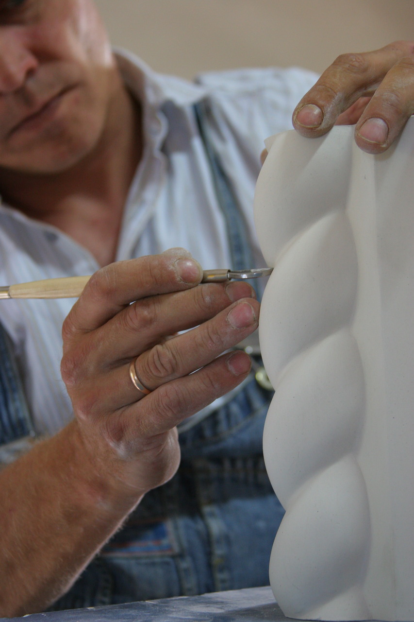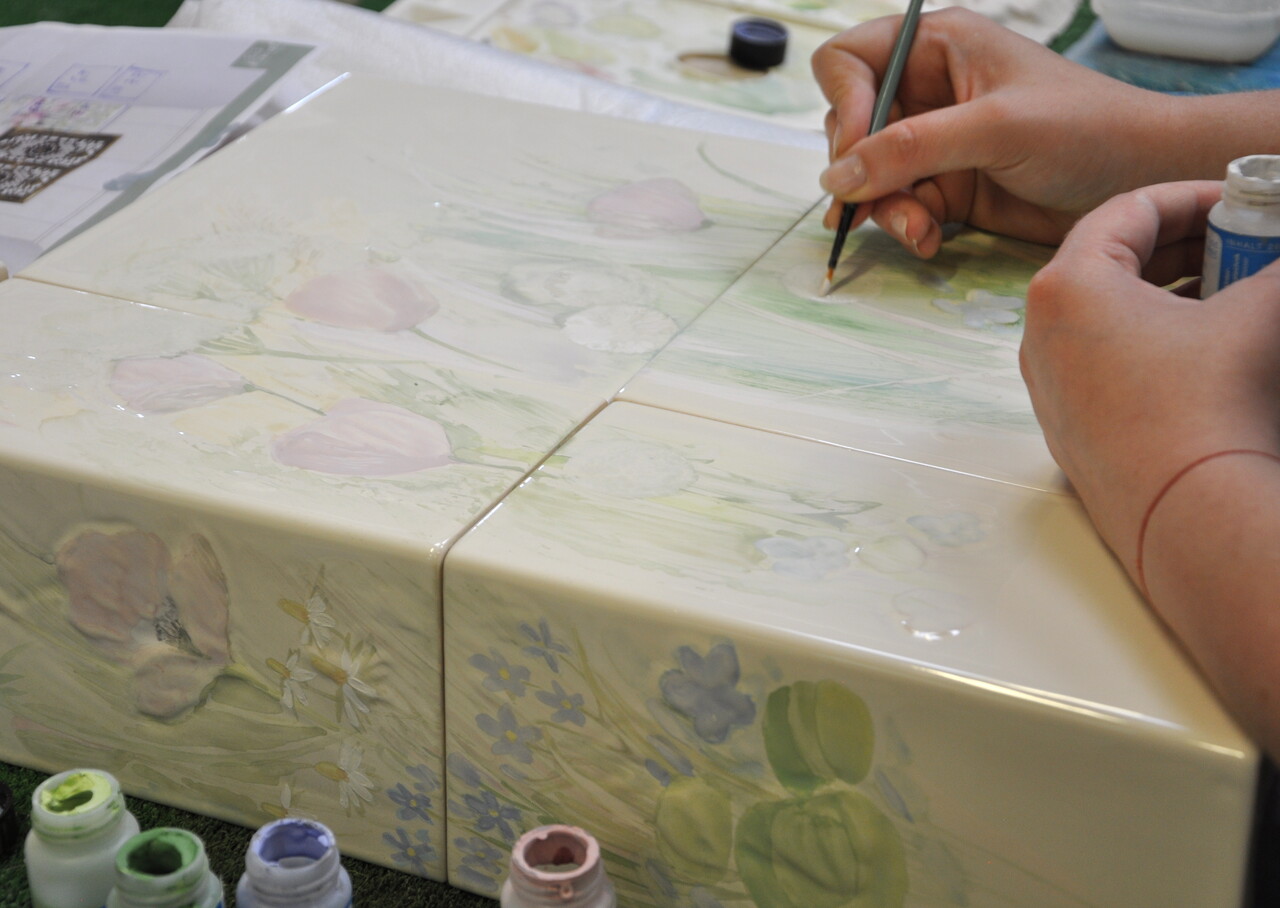 Ceramika to niespodzianka, dlatego zawsze podkreślam, że minimalne różnice w kaflach są rzeczą naturalną. Szczególnie jest to widoczne w ręcznie zdobionych kaflach artystycznych. Przykładowo, gdy robimy ceramikę z odciśniętymi roślinami czy serwetkami artysta po wypale nakłada farby i pigmenty ręcznie – ilość nie jest odmierzana maszynowo i właśnie w związku z tym drobne różnice są naturalne, a wręcz są atutem, który odróżnia kafle od masowej produkcji. Jednocześnie każdorazowo zmiana składu szkliwa, reakcja szkliw i pigmentów ze sobą czy choćby inne ciśnienie atmosferyczne powodują, że indywidualne realizacje często potrzebują kilku prób by osiągnąć satysfakcjonujący efekt. Dlatego ważna jest współpraca technologa ceramika z artystą, który kafle zdobi.