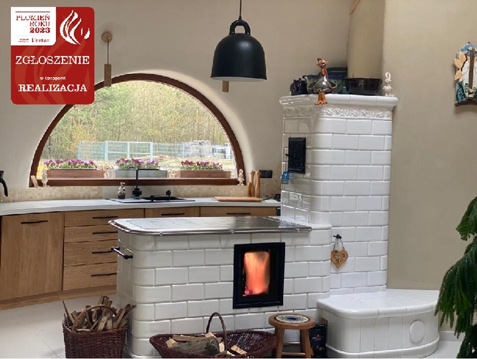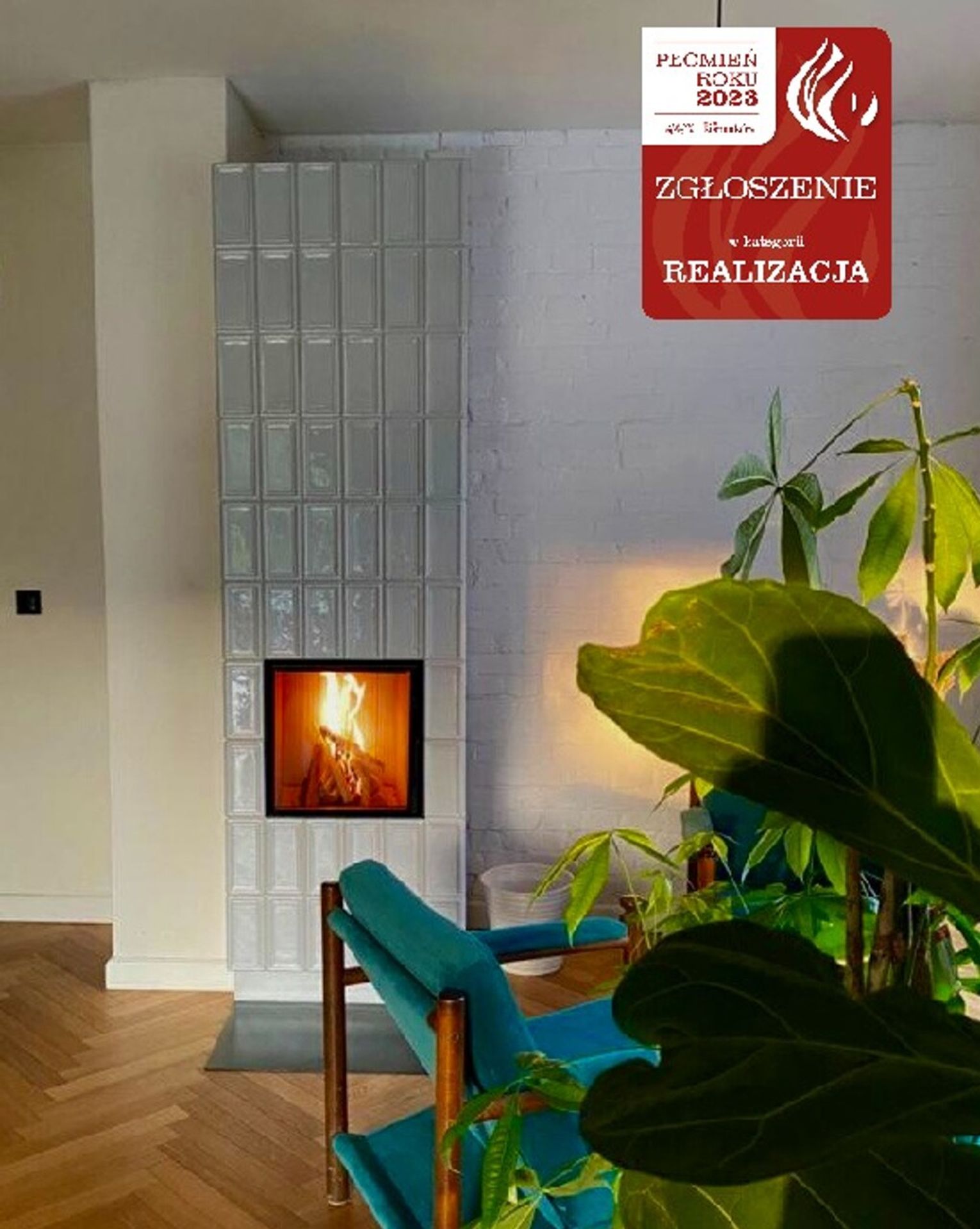 W realizacji wykorzystano palenisko piecowe marki Cebud i kafle z Riwal Ceramika i Szkło Riwal Ceramika i Szkło.