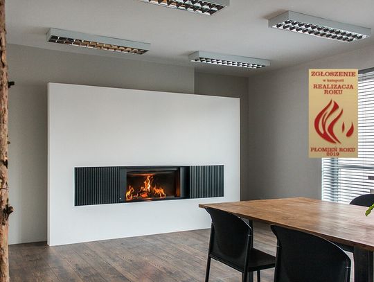 Kominek z płaską szybą wkomponowany w ścianę