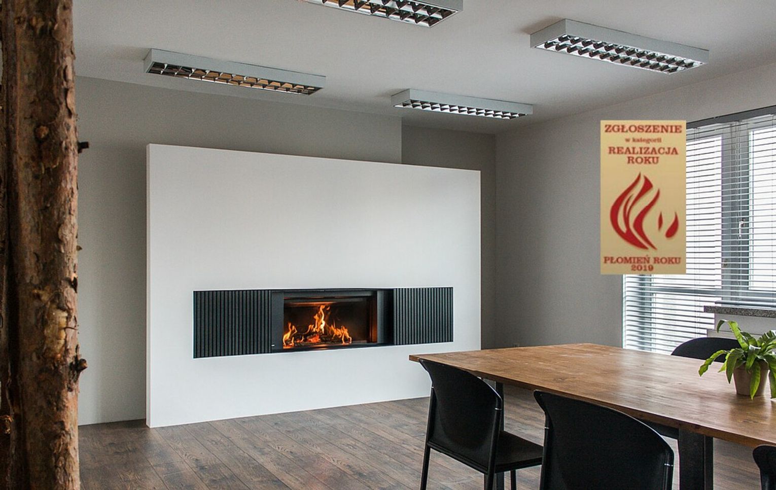 Nowoczesny kominek w drewnie