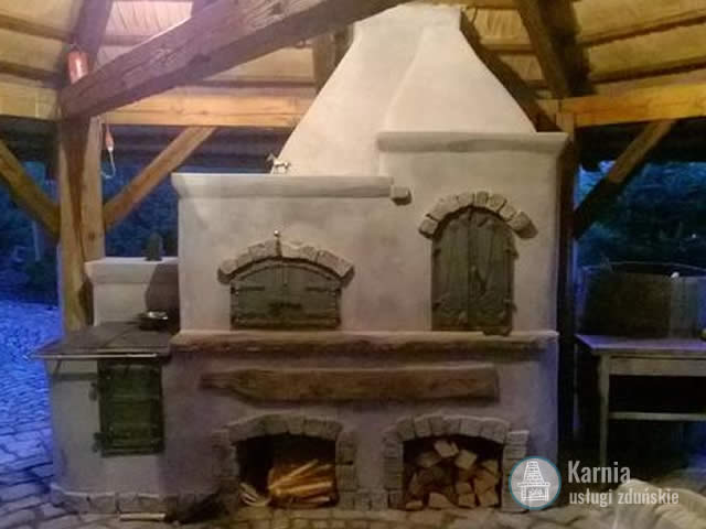 Kominki zewnętrzne, z funkcją grilla, rożna z napędem, wędzarni oraz suszarni owoców. Wyposażone w ruszt z rączkami i szpikulec rożna ze stali kwasowej nierdzewnej-wieczny, blachę paleniska, odporne na warunki atmosferyczne.