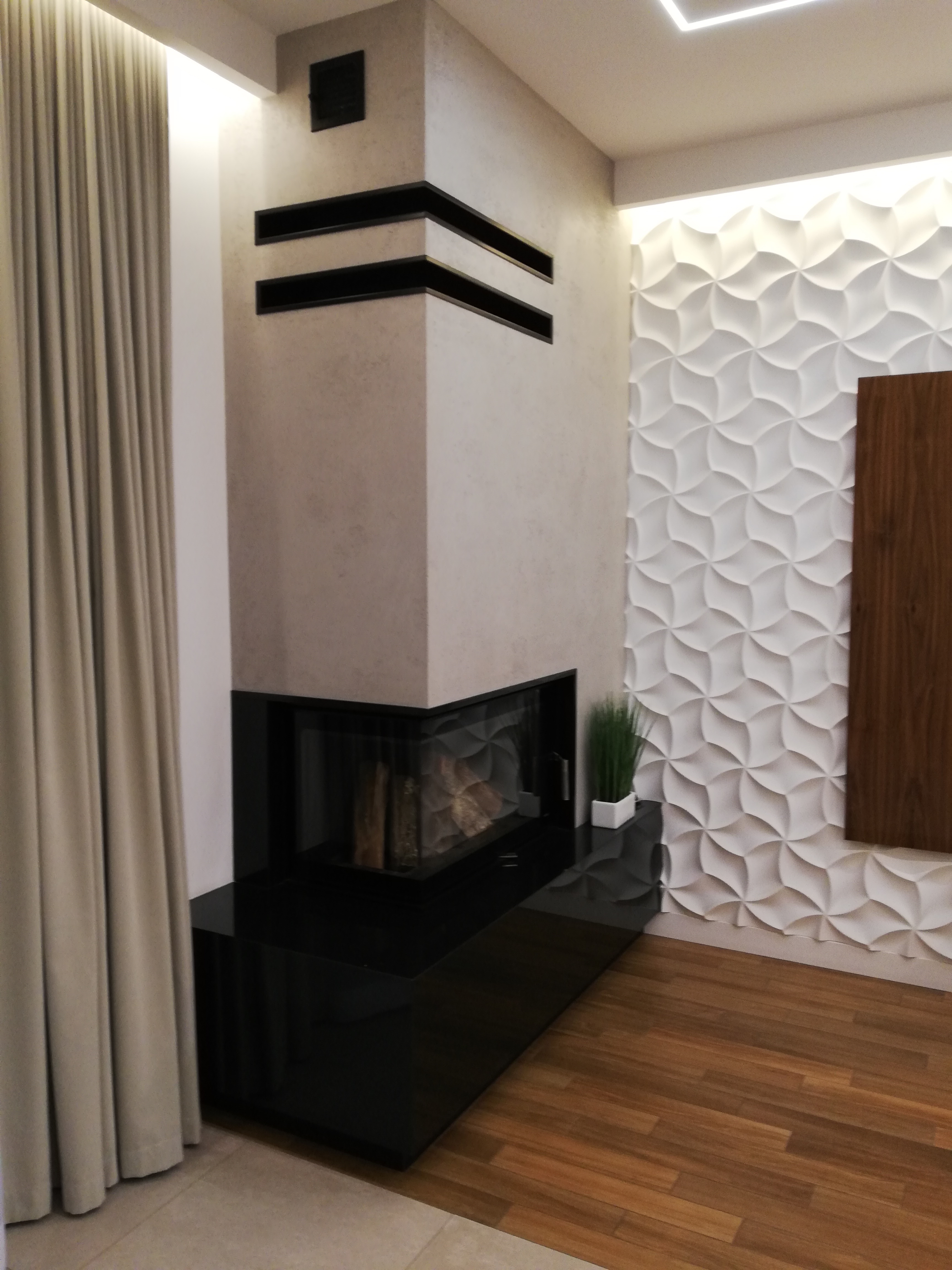 Czarny narożny kominek