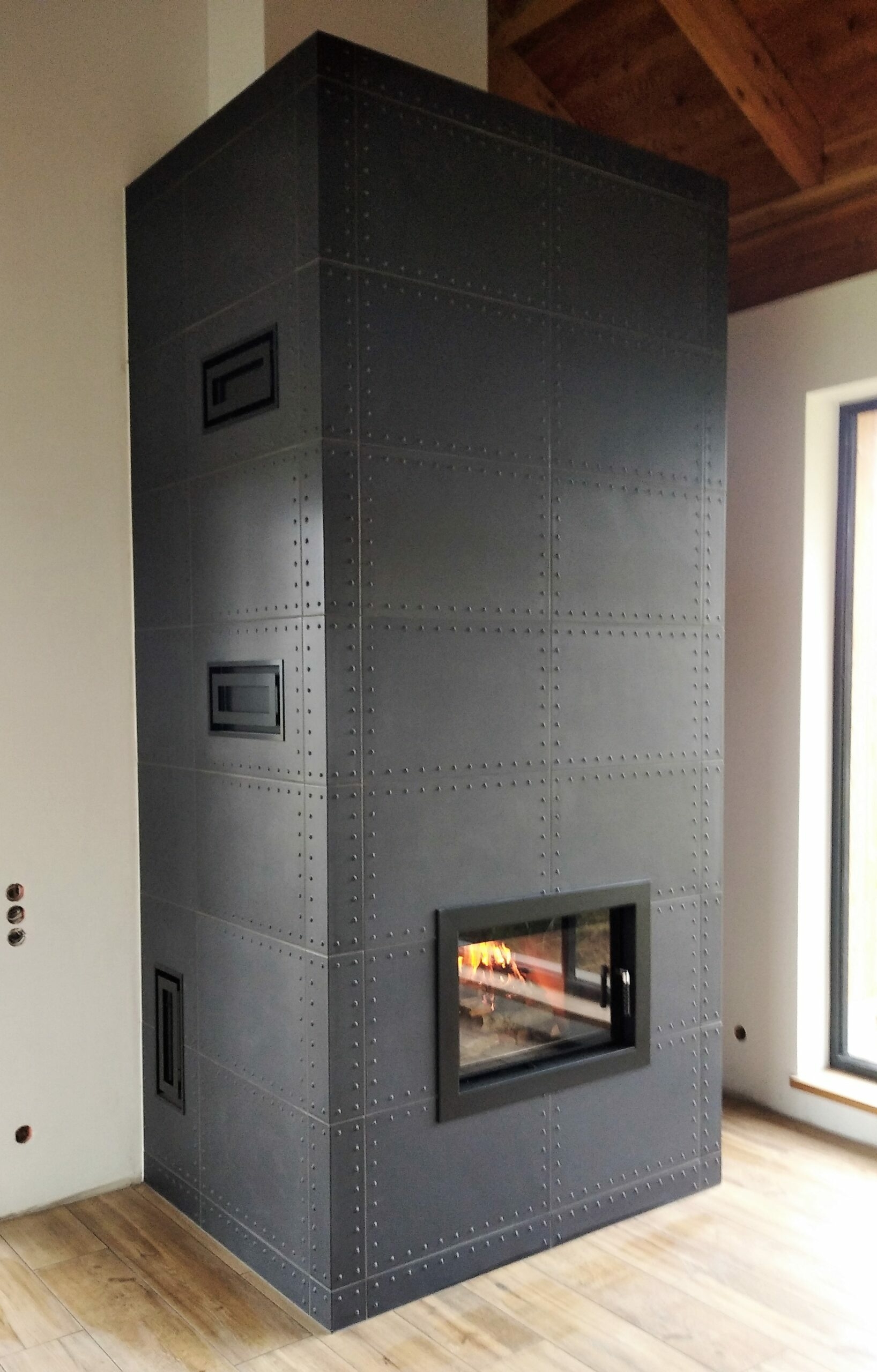 W realizacji tego niewielkiego akumulacyjnego pieca wykorzystano palenisko Haka 37/50 marki Hoxter i krążki akumulacyjne tej samej firmy oraz kafle z Riwal Ceramika i Szkło.