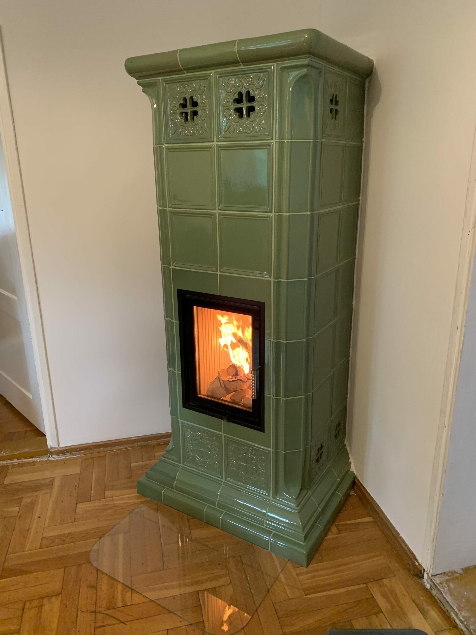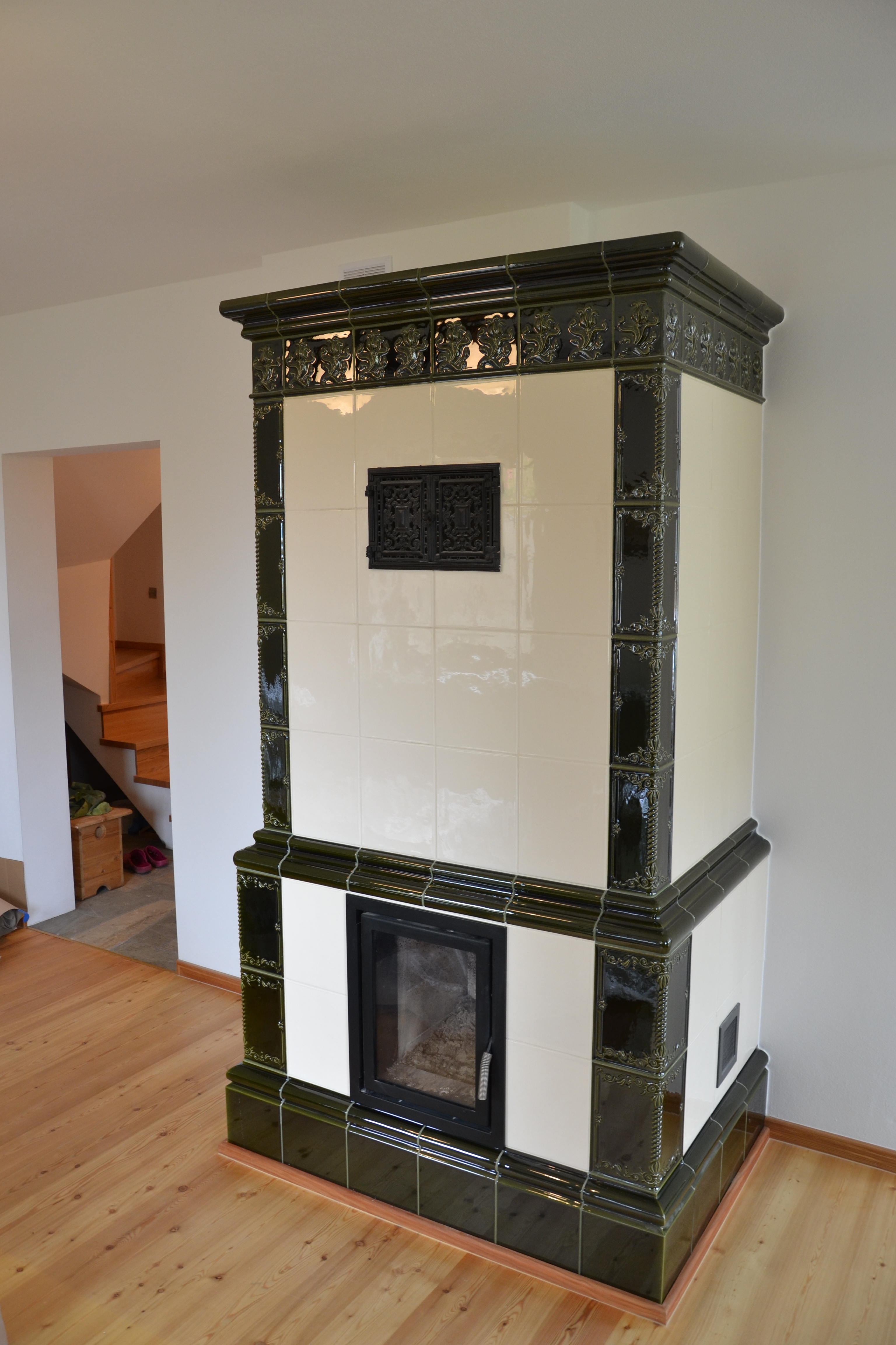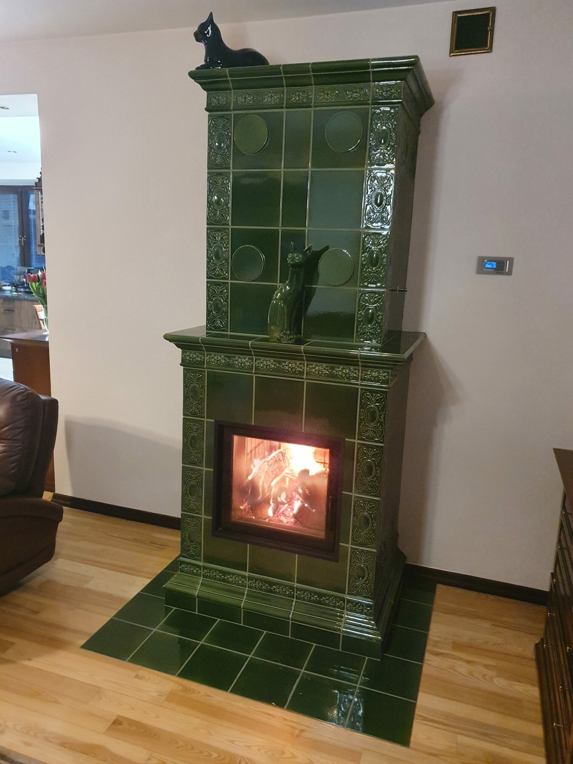 Kominek kaflowy z zielonych kafli