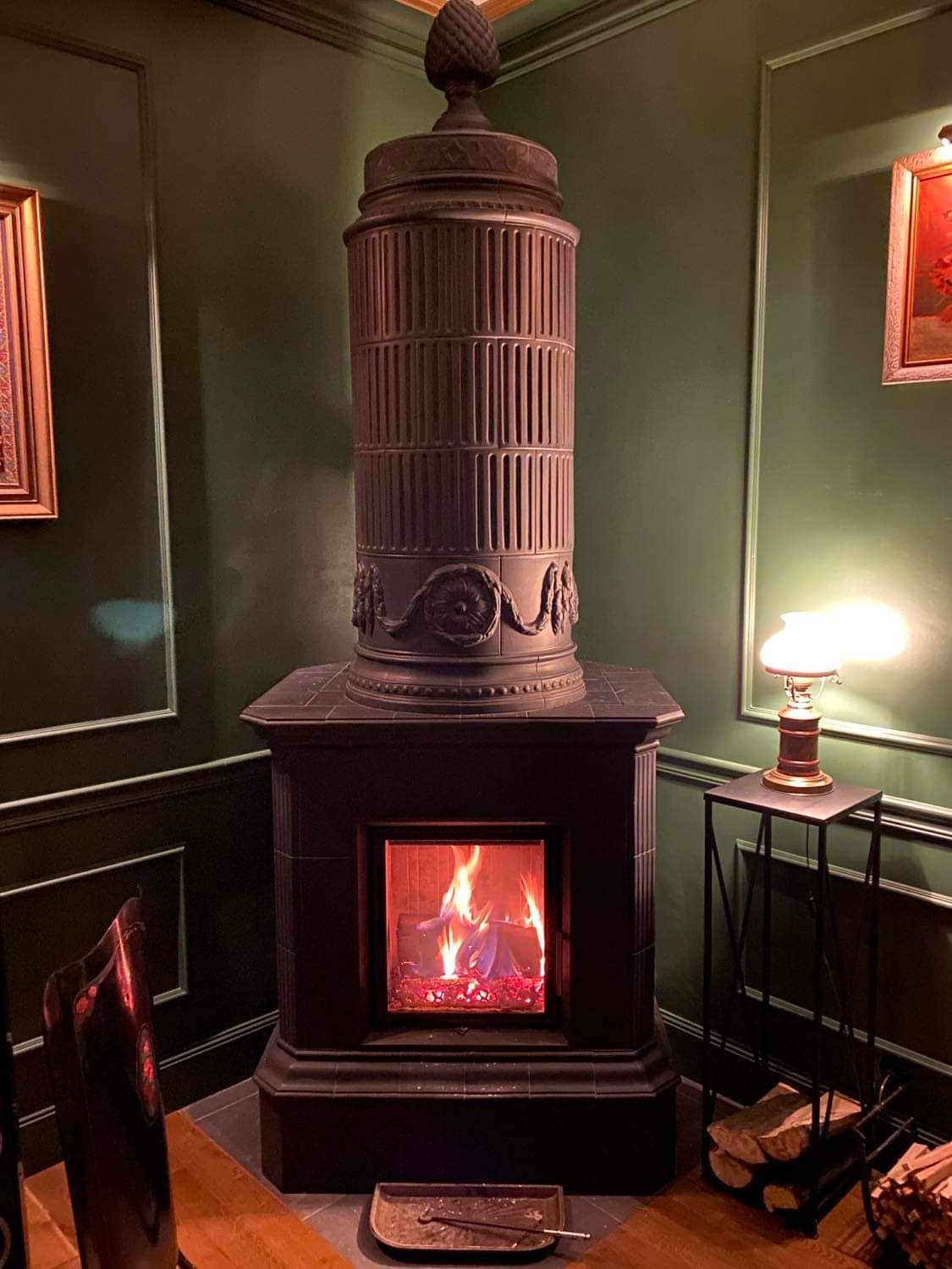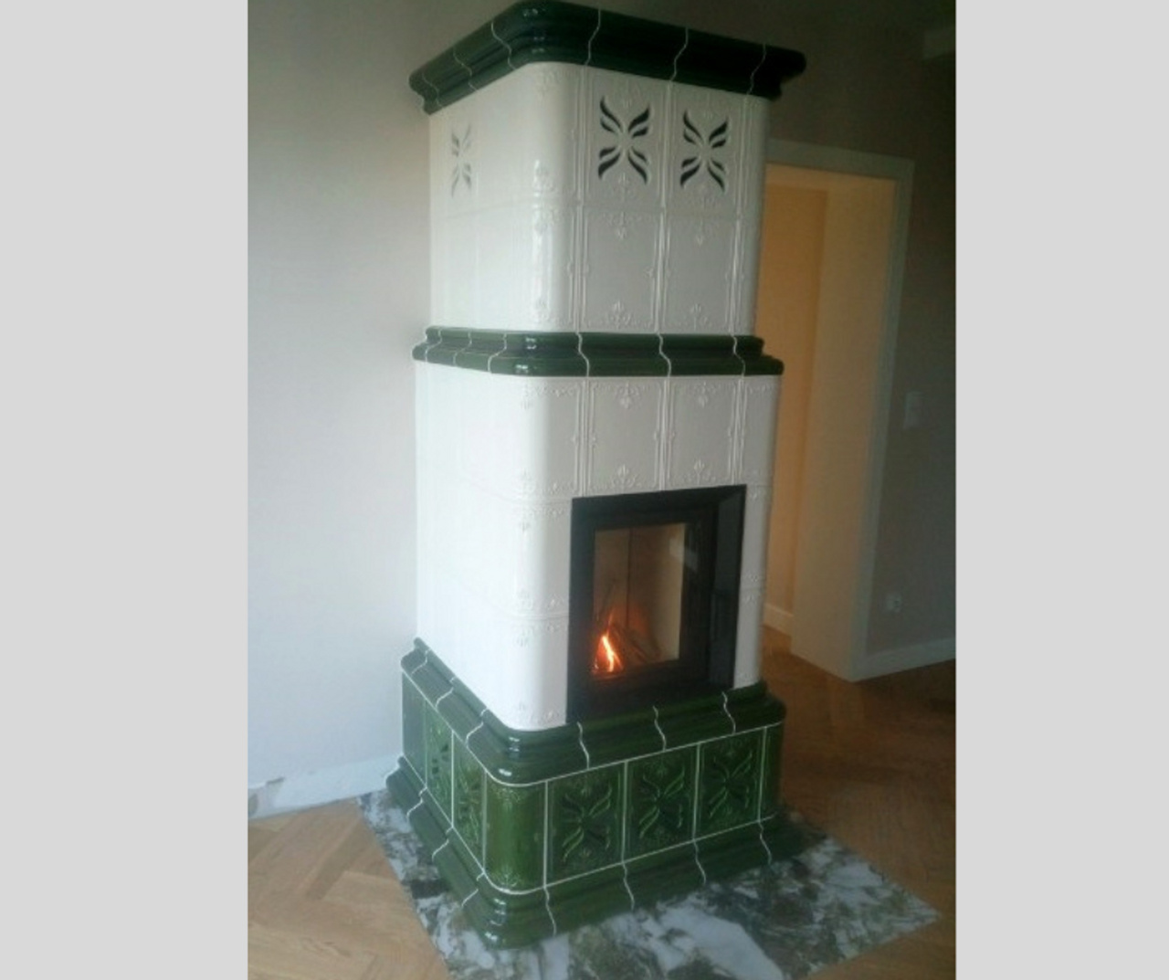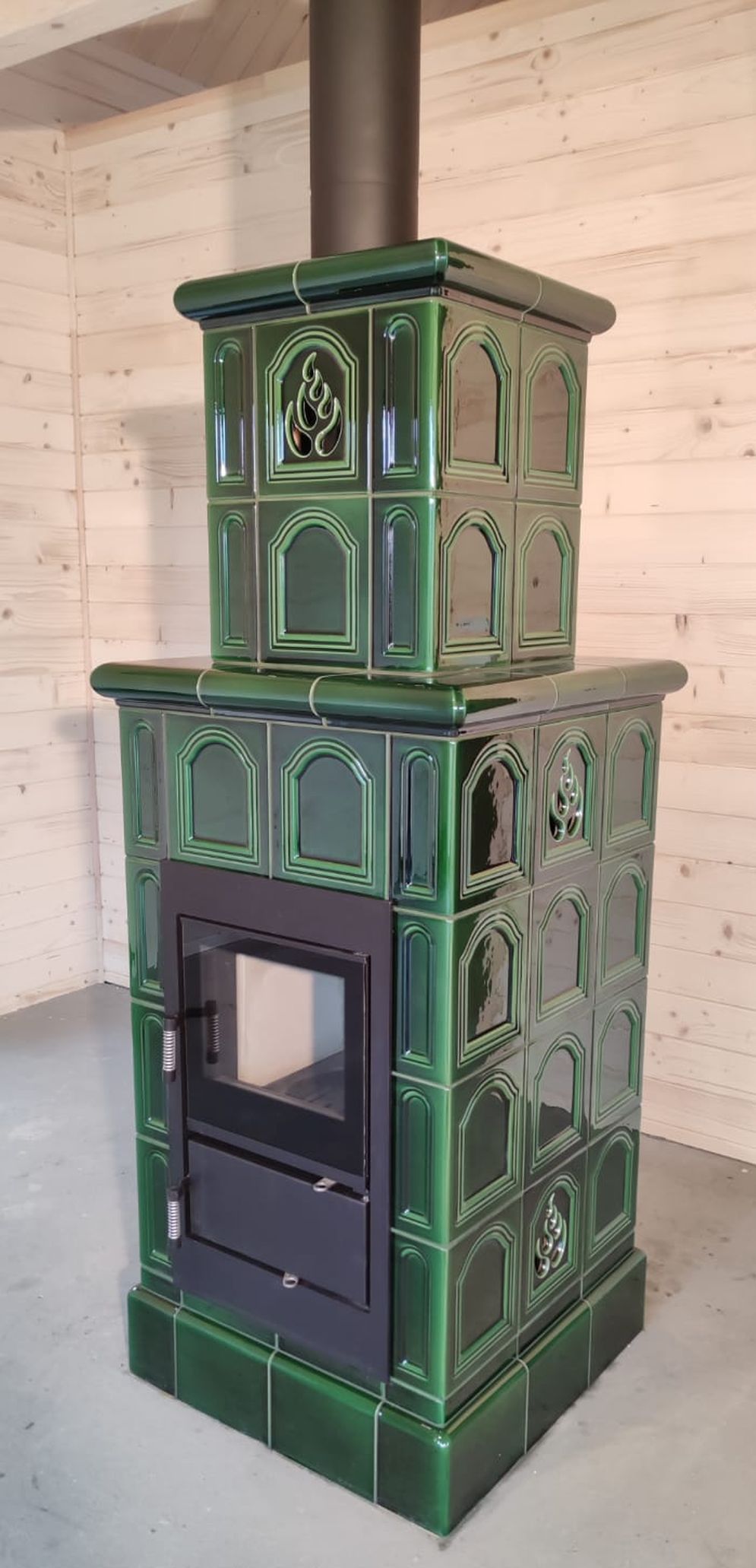 Kominek kaflowy z zielonych kafli
