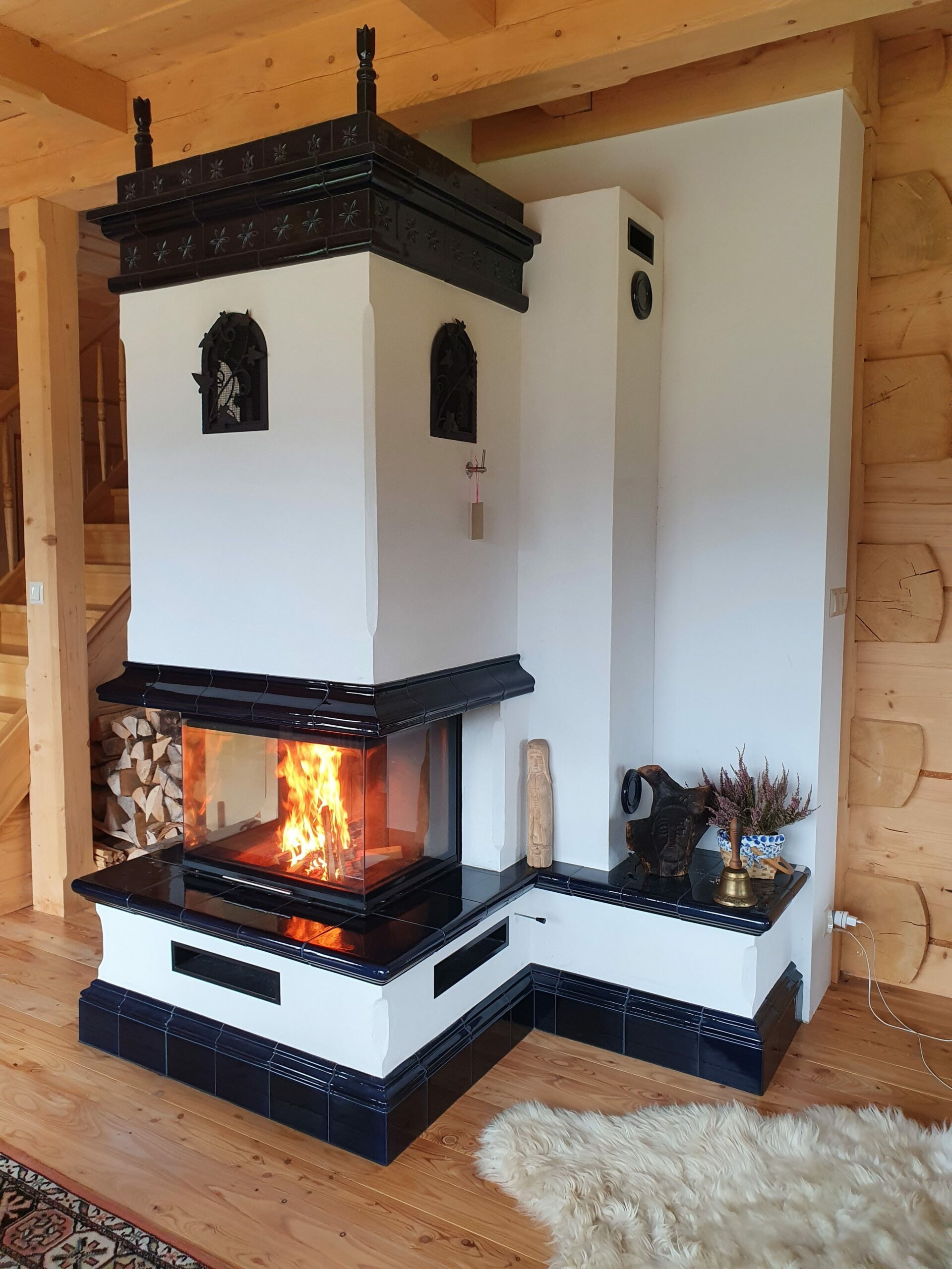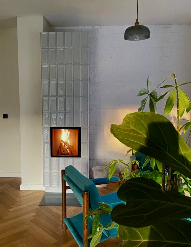 W realizacji wykorzystano palenisko piecowe spełniające wymagania Ekoprojektu OSZ 700 marki Soul of Fire i kafle z Keram-kafle Marek Pijanowski