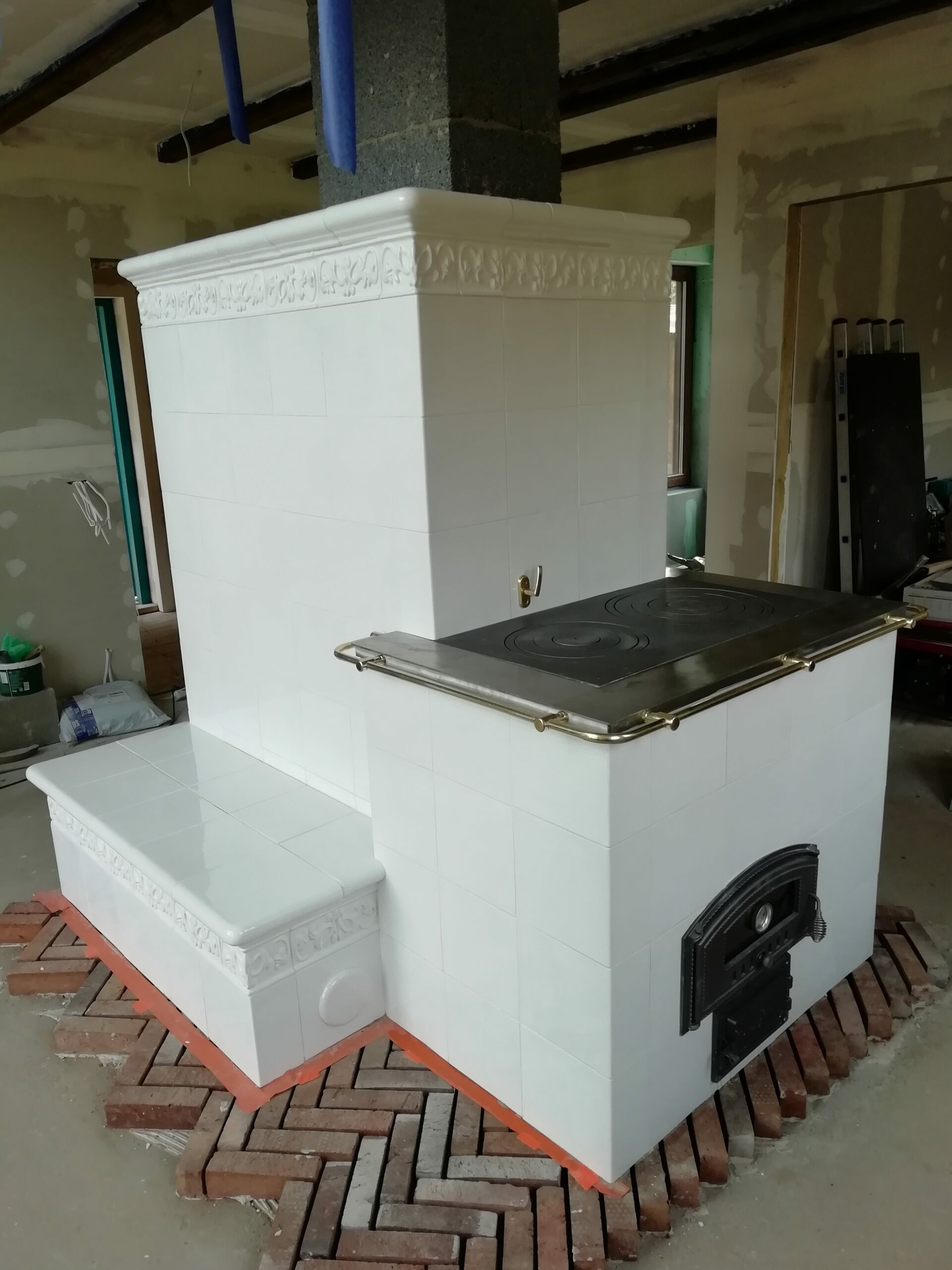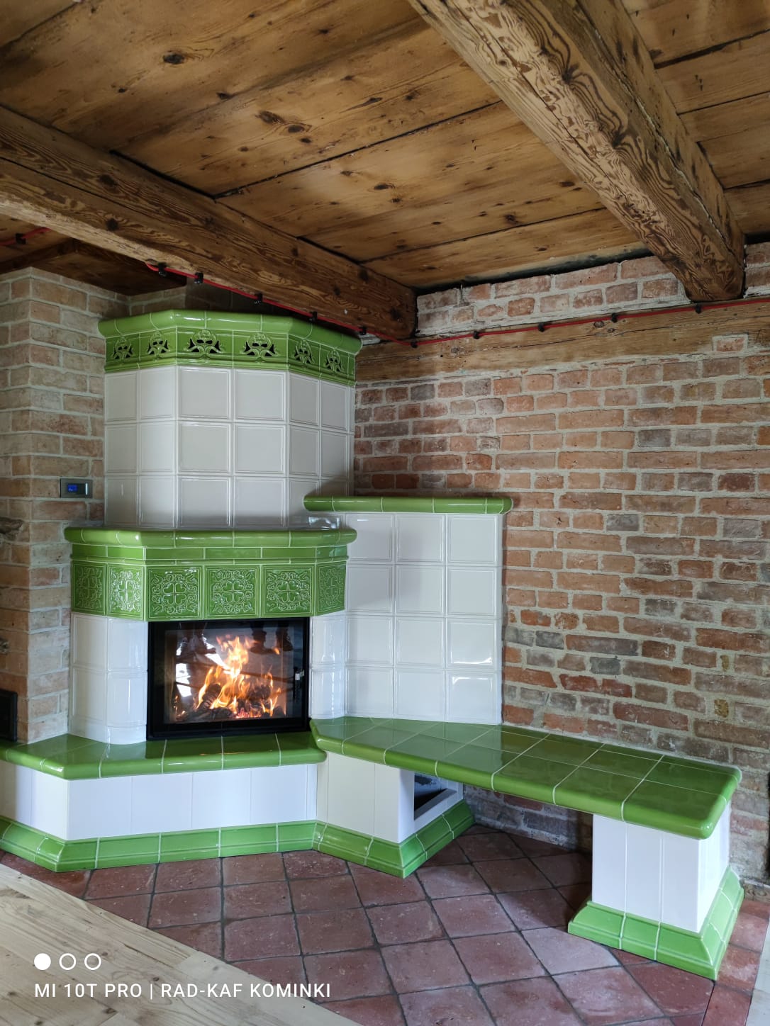 Realizacja zbudowana tradycyjną metodą zduńska z wykorzystaniem kafli z Ceramika Kornak.