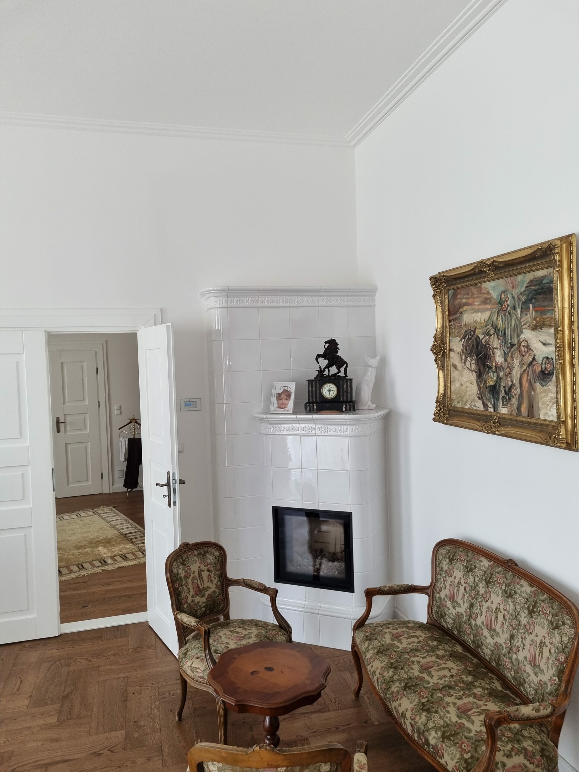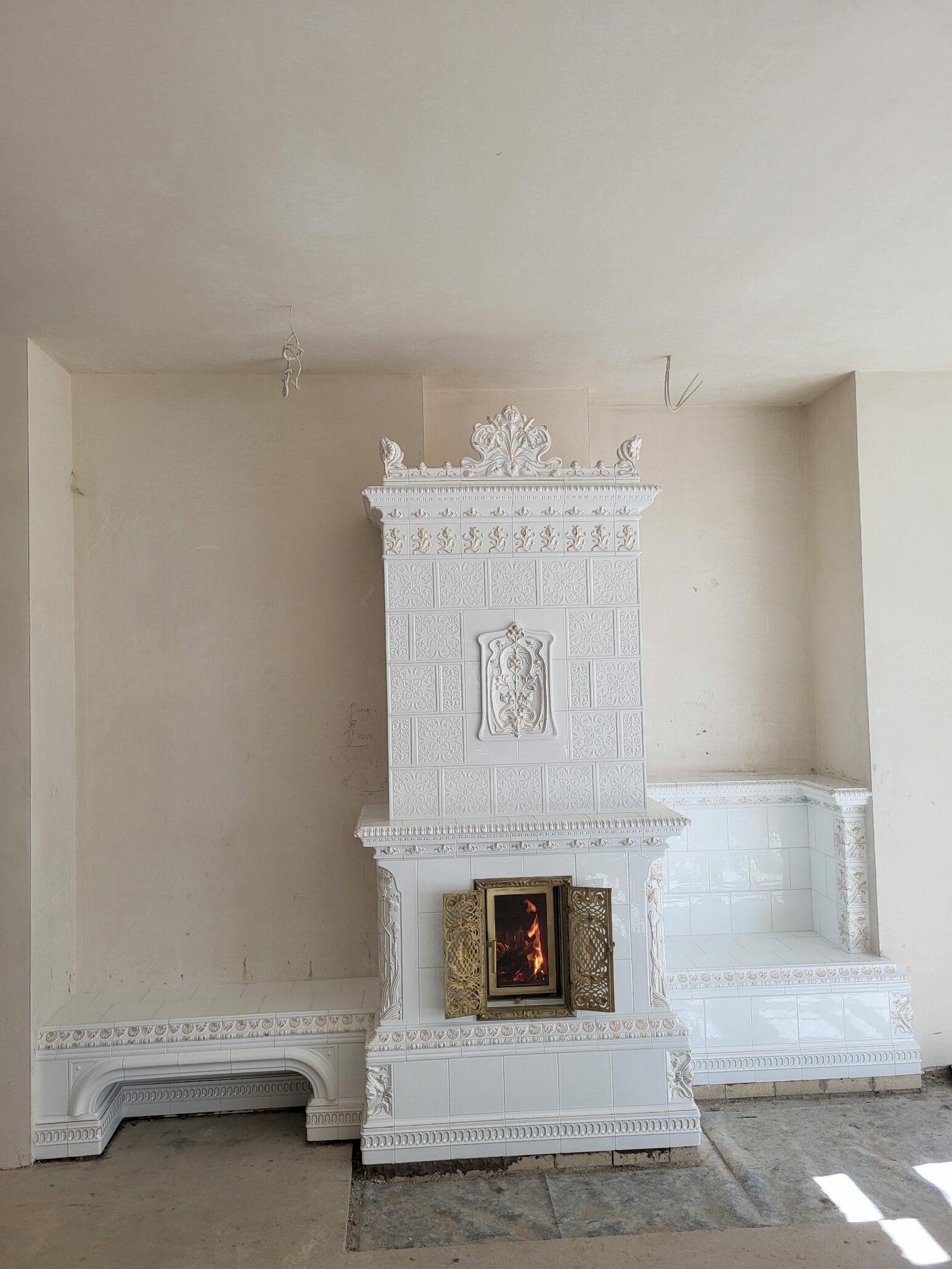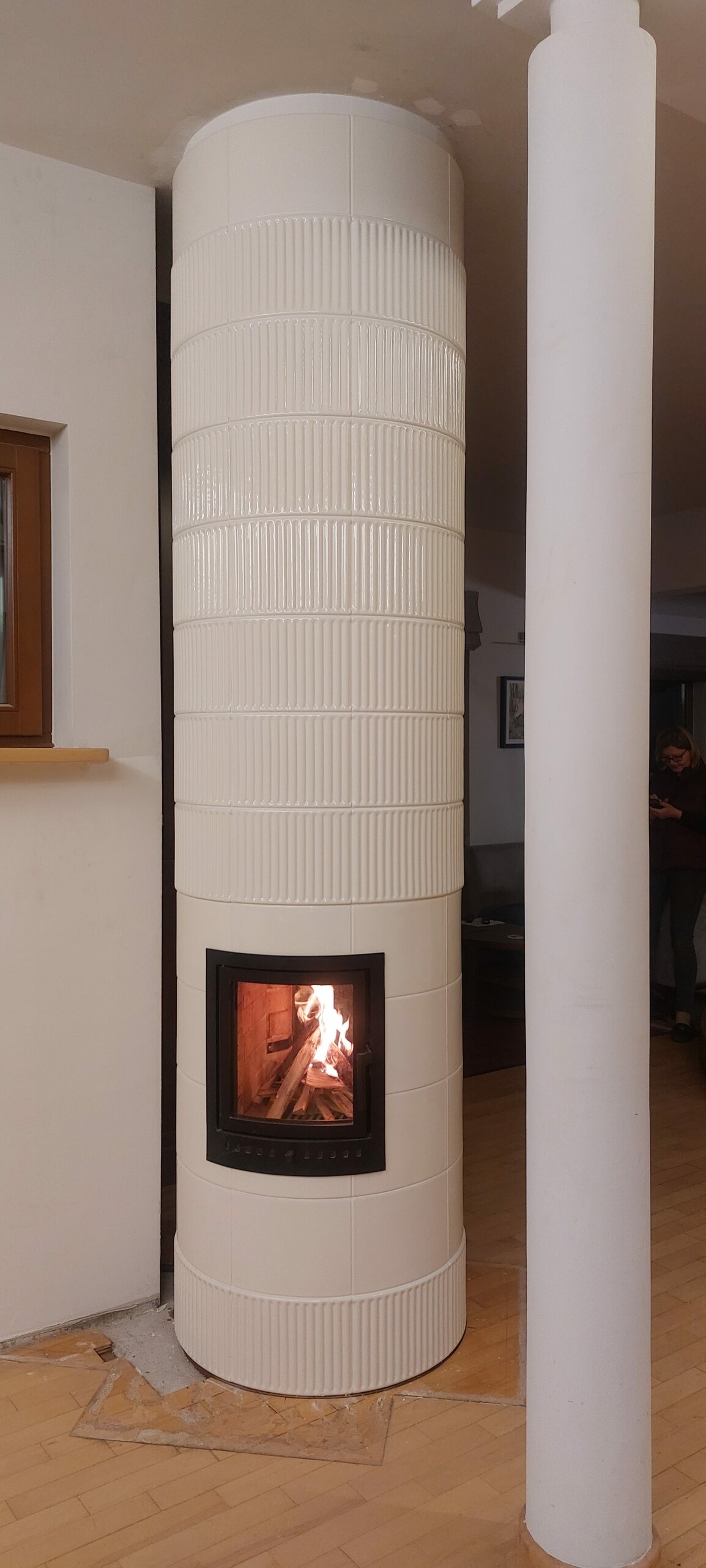 Kominek kaflowy akumulacyjny z białych kafli