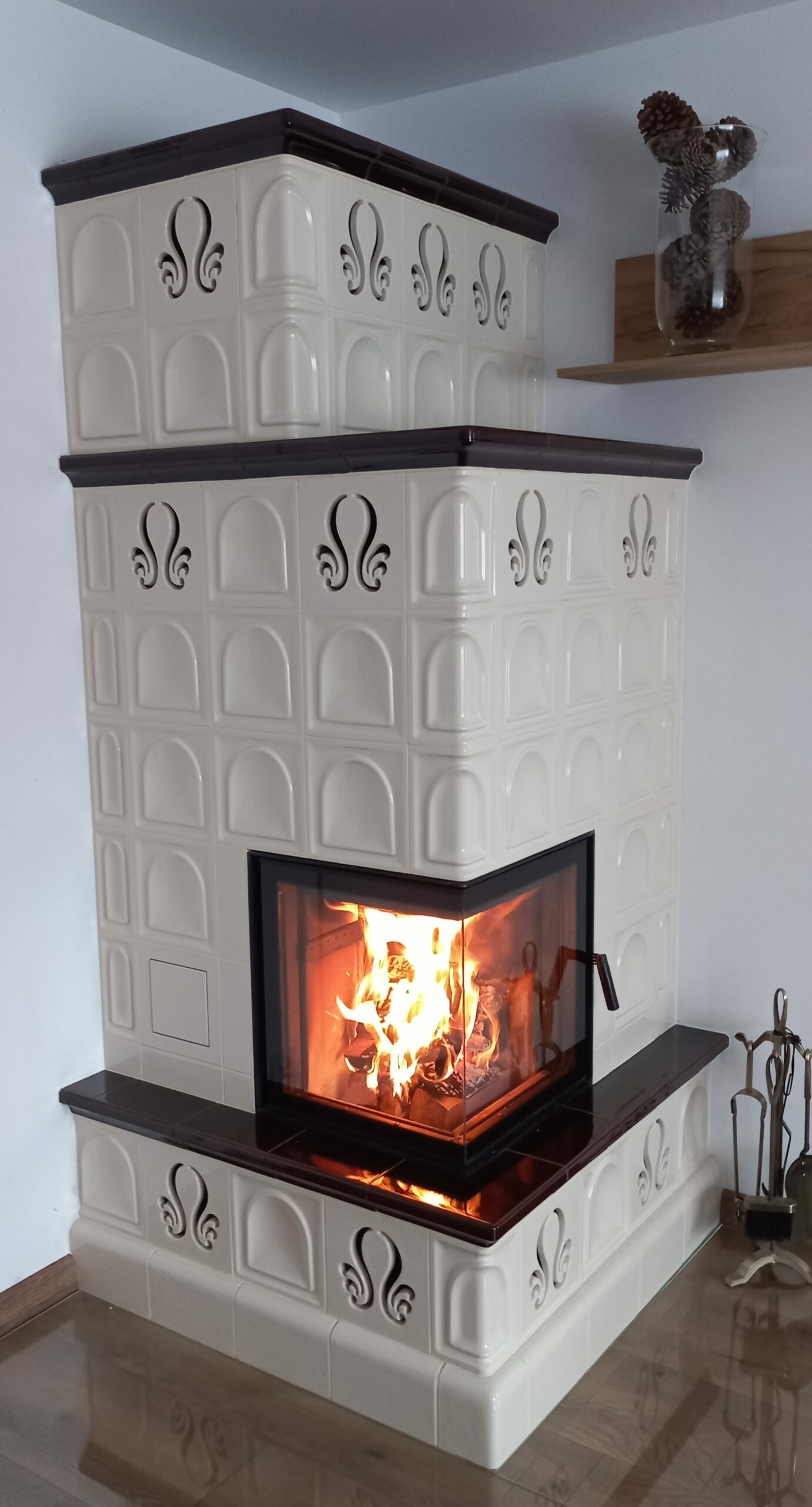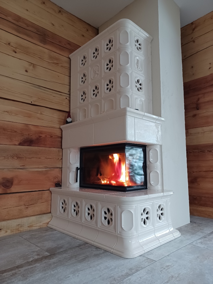 Narożny kominek kaflowy