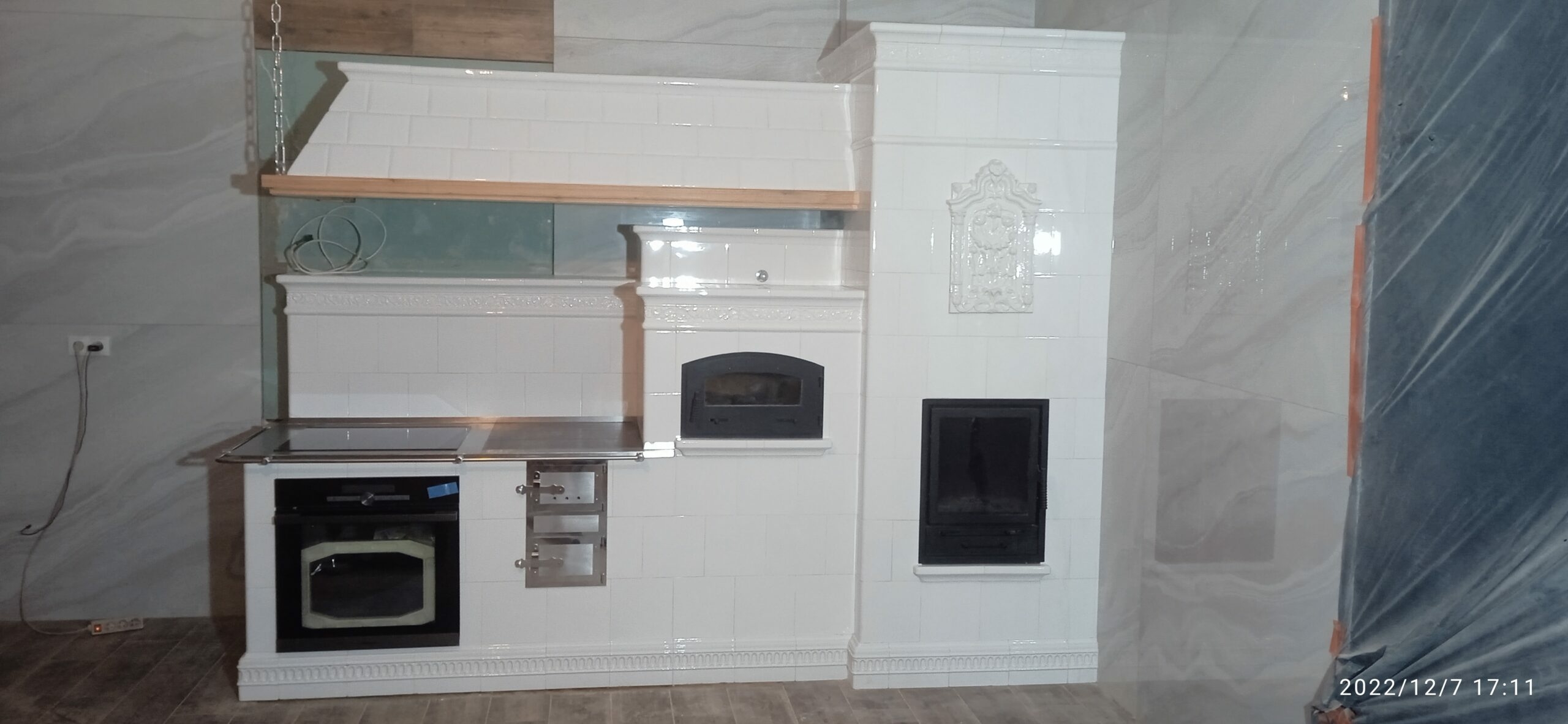 Kuchnia kaflowa wykonana tradycyjną metodą zduńską z domieszką nowoczesnych technik zduńskich. Projekt powstał wspólnie z klientami. W realizacji wykorzystano kafle z z kaflarni Ceramika Kornak.