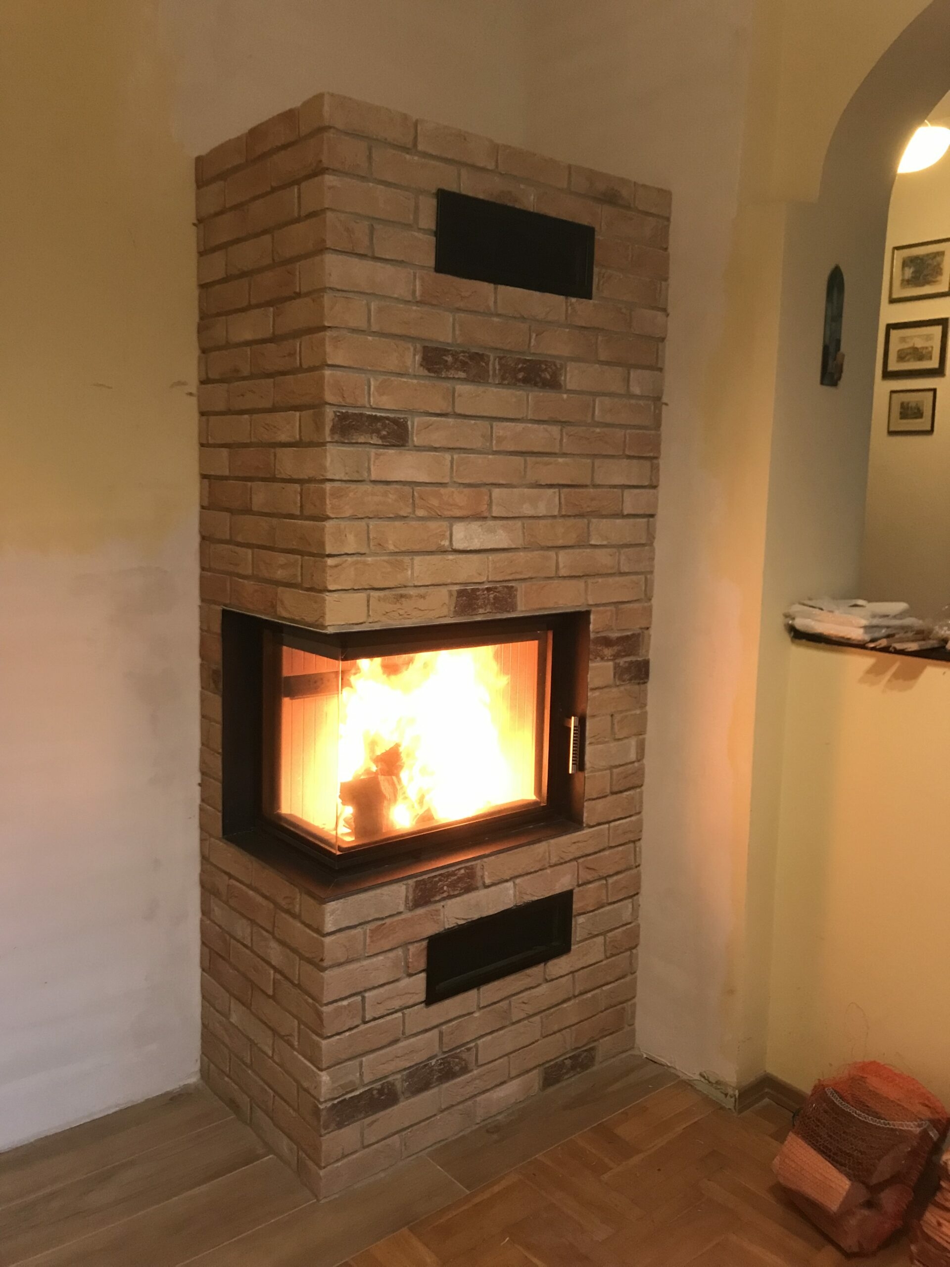 Kominek trójstronny na drewno