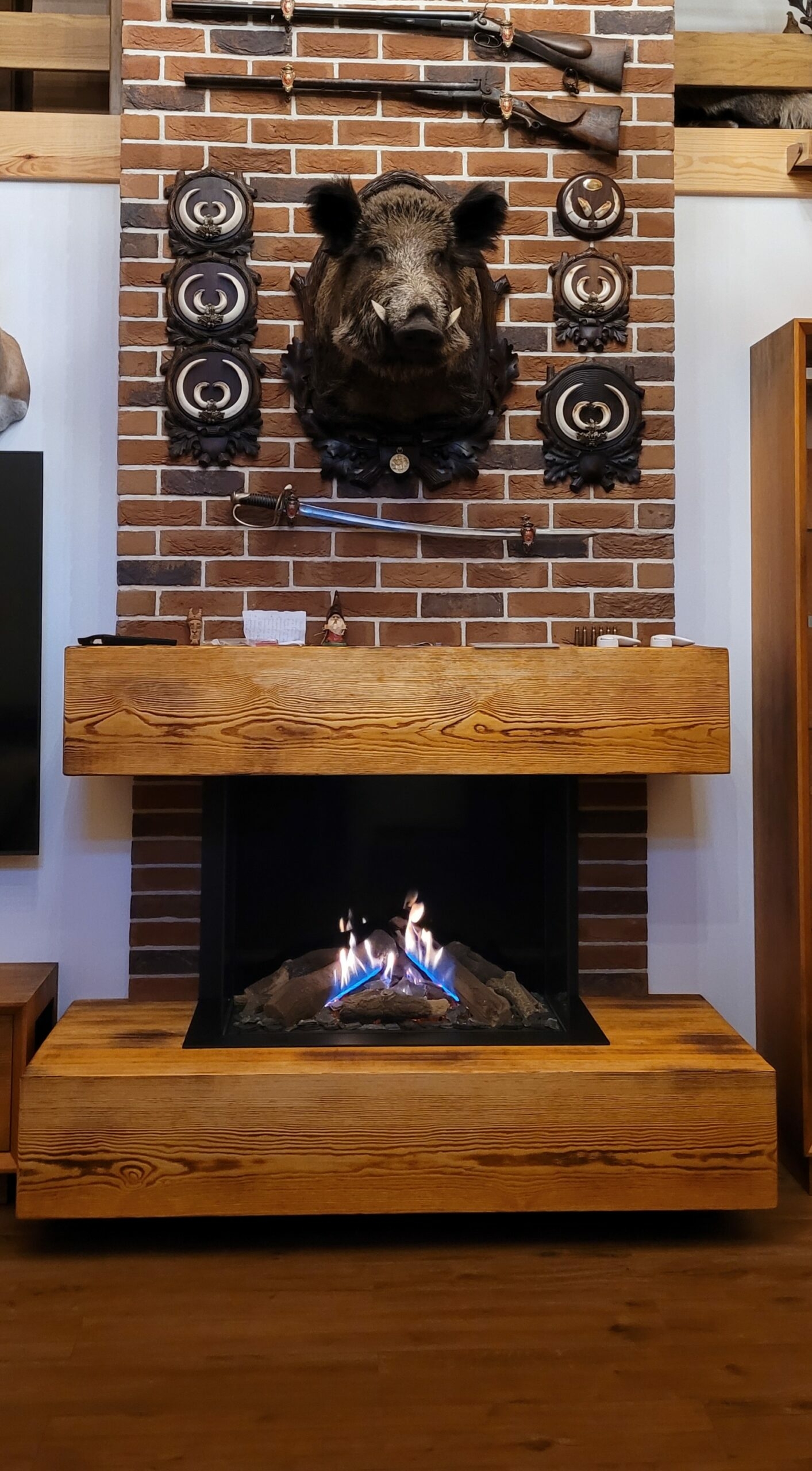 Gazowy kominek w stylu rustykalnym