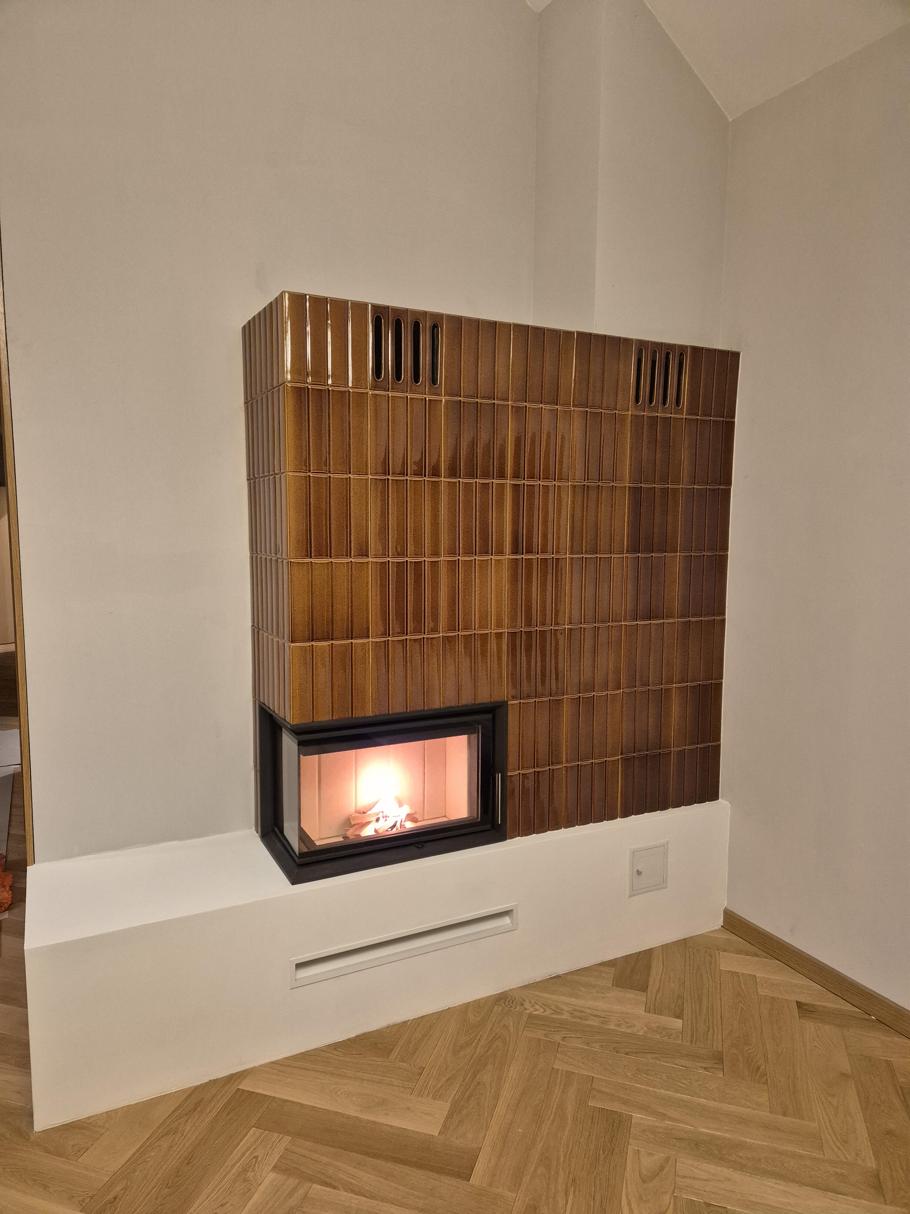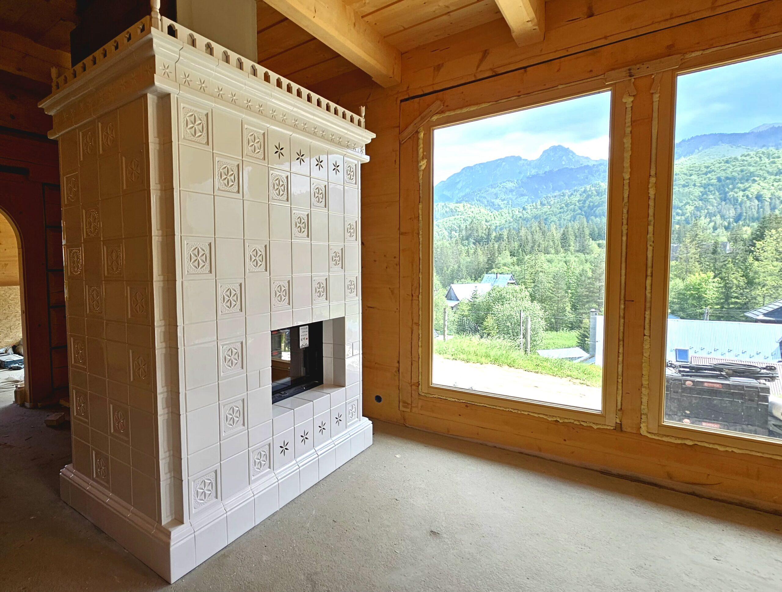 Kominek został wykończony kaflami górskimi z Kaflarni Kafel - Art.
