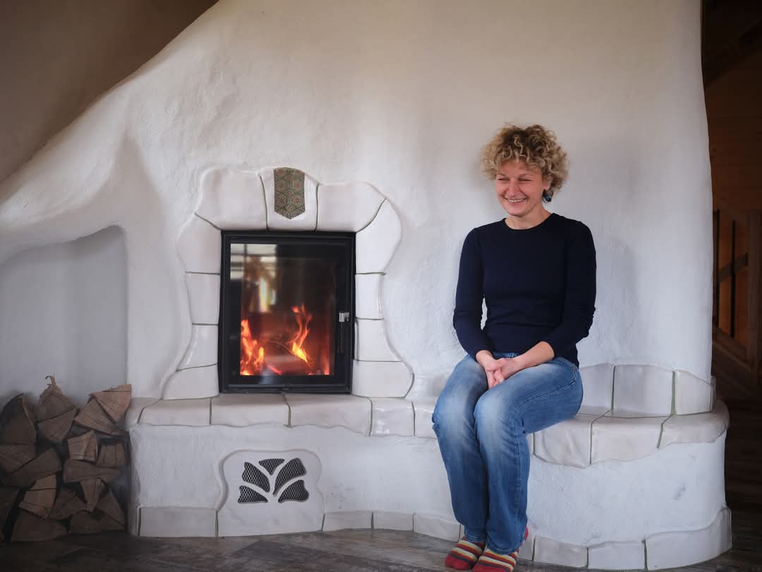 Kominek jest wykończony kaflami KOLTOCSEMPE.
