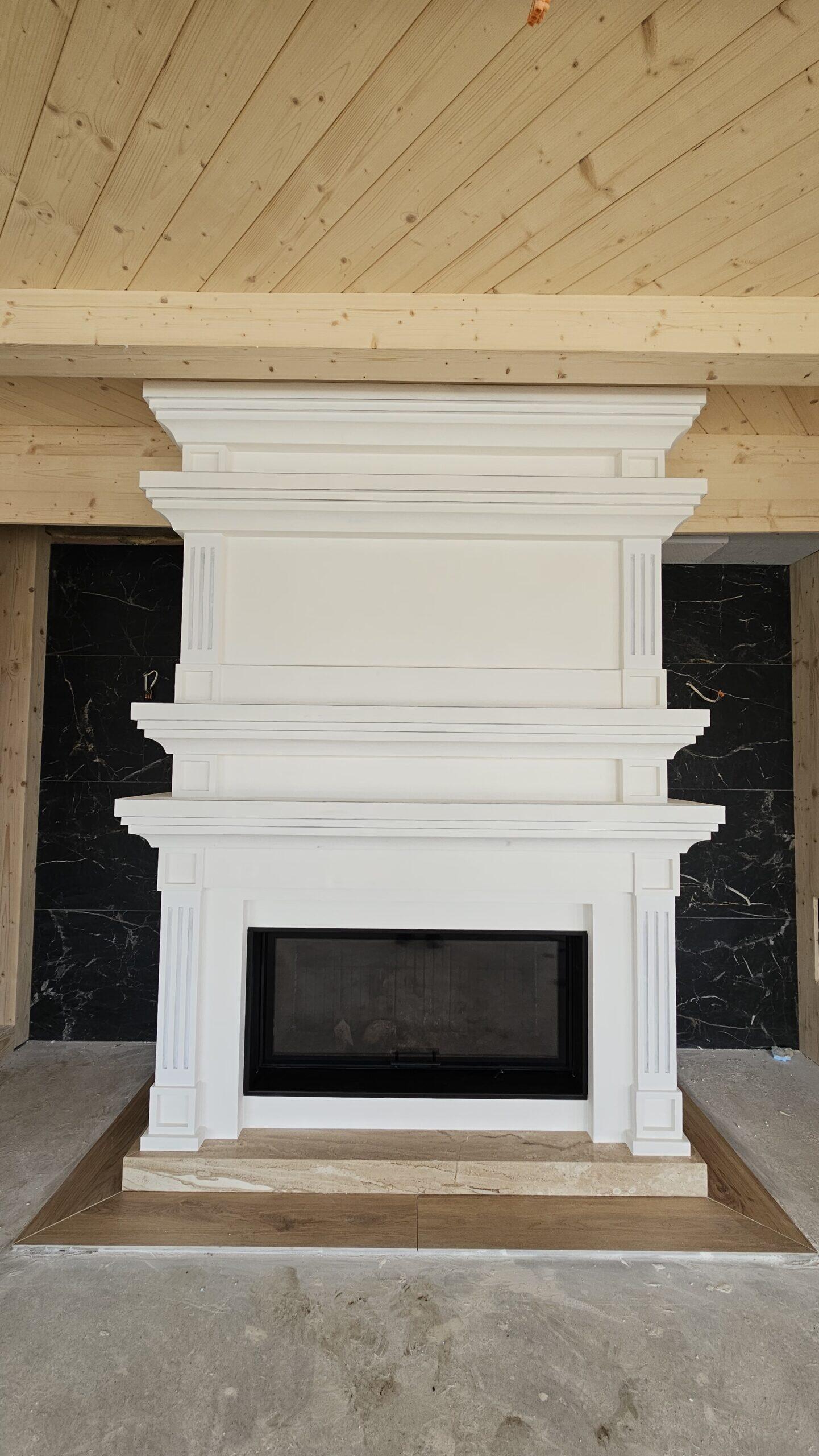 Zabudowa kominka rzeźbiona i wykonana ręcznie.