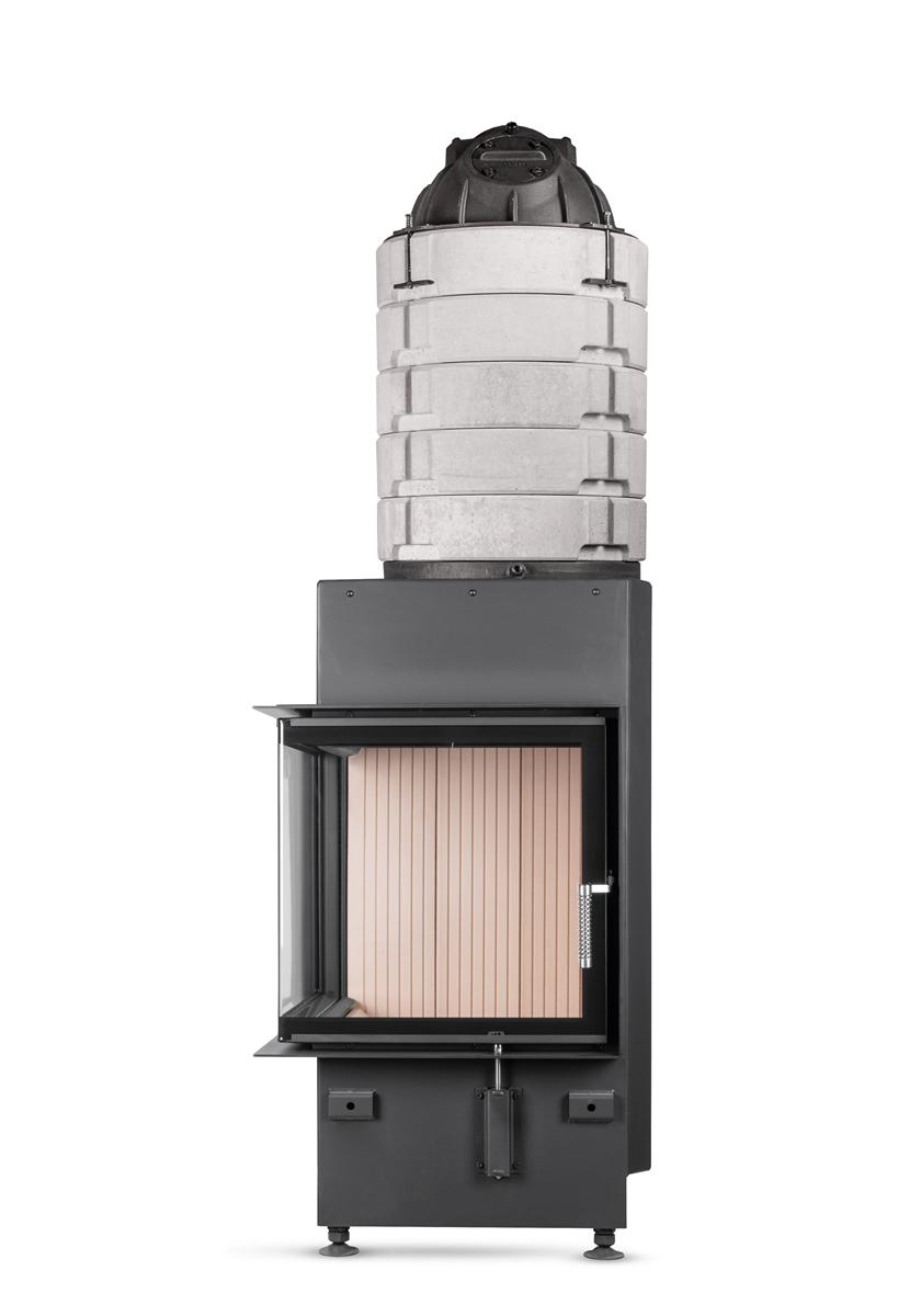 Występuje w wersji z jasnym lub ciemnym szamotem, który jest barwiony w masie. Przeszklenie witroceramiczne z nadrukiem i kurtyną czystej szyby. Wyposażona w dodatkowy system dopalania spalin. Możliwość elektrycznego podnoszenia drzwiczek. Opcjonalny automatyczny sterownik procesu spalania. Drzwiczki z opatentowanym mechanizmem podnoszenia wykonanym ze stali szlachetnej. Przeznaczony do domu z rekuperacją. Spełnia Ecodesign od 2025 r. Gwarancja 10 lat.